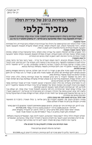 העירייה ולמועצה בעיר רמלה שתיערכנה ביום שלישי ,י“ח בחשוון התשע“ד 22/10/13