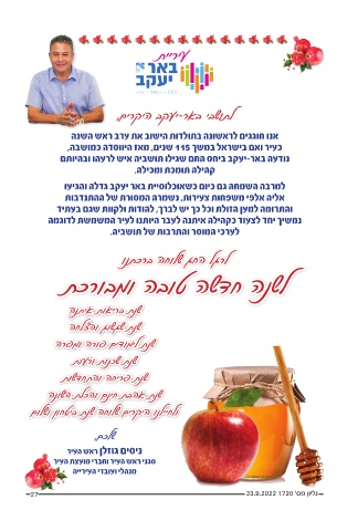 אנו חוגגים לראשונה בתולדות הישוב את ערב ראש השנה