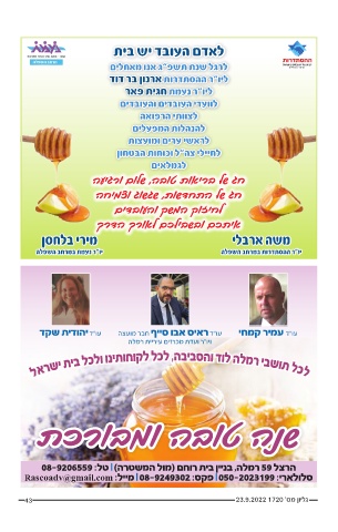 לרגל שנת תשפ“ג אנו מאחלים מרחב השפלה