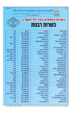 כשרות העסקים בעיר לוד תשפ“בכשרות רבנות