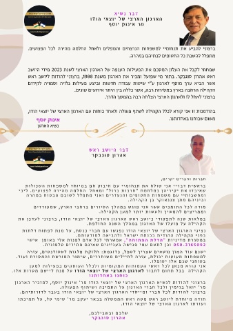 שמחתי לקבל את העלון המסכם את הפעילות הענפה של הארגון הארצי לשנת 2023מידי היושב